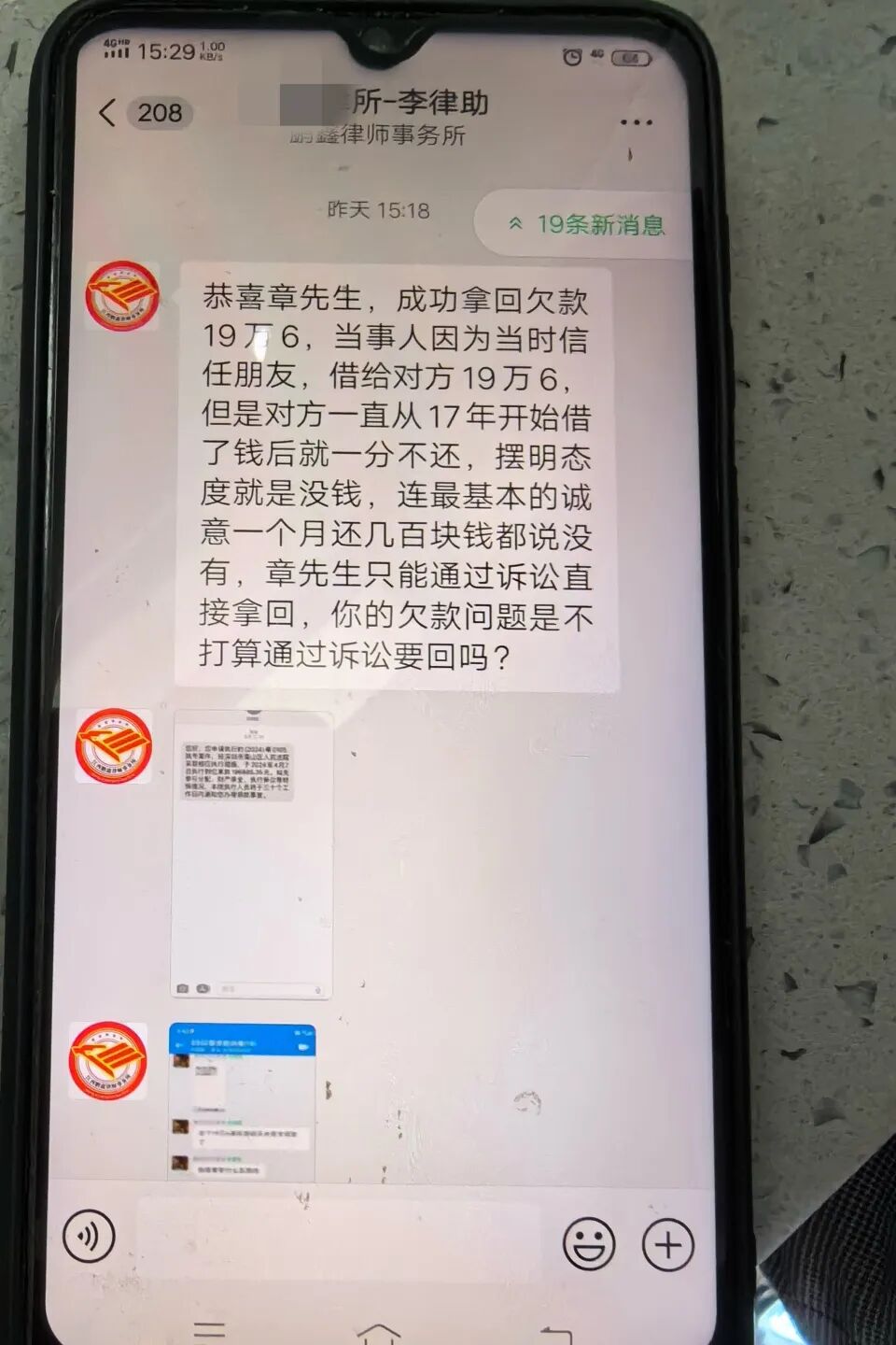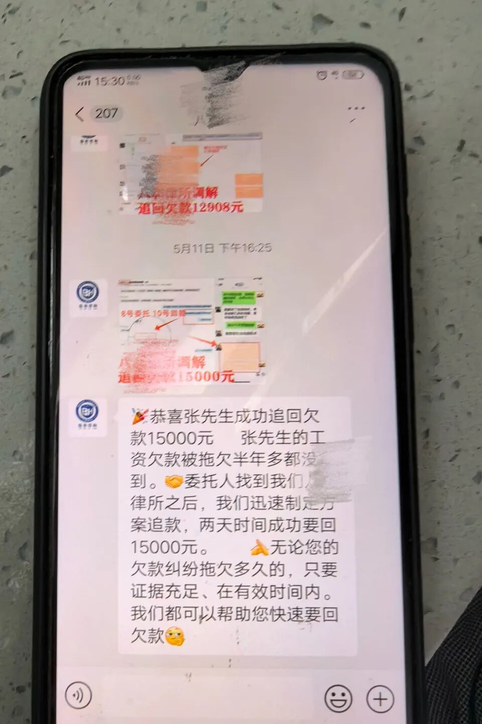 该人自称是“冠德律师事务所”的律师,有处理经济纠纷的丰富经验,能快速有效追回欠款。期间俩人互加了微信,律师告知马某这笔钱欠款金额大且缺少有利证据,便给马某发了一个收款的二维码,让马某汇款2万元,并承诺一个月左右就能追回欠款。