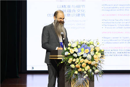 在主旨报告环节,四位国内外知名专家带来了精彩纷呈的学术分享。河北省建筑设计研究院有限责任公司董事长、总建筑师、河北省建筑大师郭卫兵以《城市视角下的城市更新》为题,分享了本土实践的深刻思考;意大利建筑设计公司创始人马里奥·卡迪那斯在《建筑与环境:迈向再生设计》的报告中,引入了前沿的国际设计理念;河北工程技术学院副校长武勇教授结合本校实践,作了《城市更新视角下的校园更新》的专题分享;意大利Baoblab创始人吉罗拉莫·巴尔巴恰以《超越区规划:为幸福和快乐设计城市,城市共存与情感可持续性的新逻辑》为题,探讨了城市规划中的人文关怀与情感维度;各位嘉宾的分享内容详实、案例生动、观点新颖,辅以精美的视觉材料,为与会者带来了强烈的思想碰撞与艺术震撼。