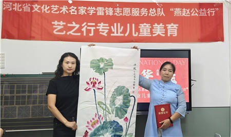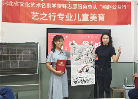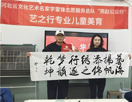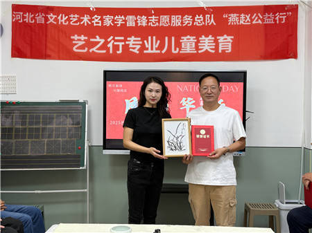 艺之行文化艺术交流中心主任庞珊珊在致辞中,对各位艺术名家在百忙之中投身公益活动表示衷心感谢。她动情地表示,艺术家们的无私奉献精神与大爱情怀令人深受感动,其所赠予的精美书画作品,中心将悉心珍藏、认真学习。未来,中心也将以老师们为榜样,积极组织员工与学员,运用艺术的力量服务社会、回馈社会。