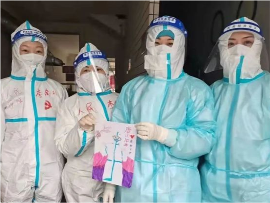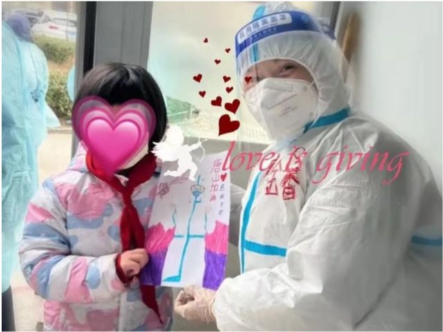 采完核酸的小朋友拿着给我们的画像向我们深鞠一躬,