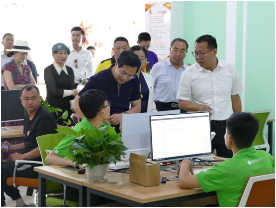 随后孙华山副部长一行来到创业孵化区,政府副县长常家宁介绍中心可为当地创业者提供低成本的创业软、硬件支持,如办公场地、设施设备、持续的技能提升服务等。另外,中心为入驻的电商企业、个人均配备了办公室、桌椅、网络、下单一体机、溯源机等设备设施。只要是做电商有关的业务,就可以申请入驻服务中心,达到一定的规模就可以去小型孵化器工作。常县长说欢迎更多的年轻人一起发展广灵电商,为从事网络创业和服务的创业青年和大学生提供产品研发、包装设计、营销策划、咨询服务及其他增值业务的服务。