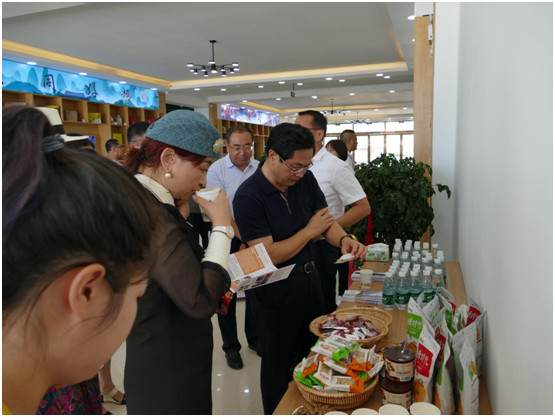 孙华山副部长一行走到藜麦展台前,工作人员介绍说藜麦属于易熟易消化食品,口感独特,具有均衡补充营养、增强机体功能、修复体质、调节免疫和内分泌、提高机体应激能力、预防疾病、抗癌、减肥、辅助治疗等功效,适于所有群体食用,尤其适于高血糖、高血压、高血脂、心脏病等慢性病,以及婴幼儿、孕产妇、儿童、学生、老年人等特殊体质人群。长期食用,效果显著。藜麦符合人类对食品-----安全、健康、营养、天然的需求。孙部长就藜麦的市场前景与县委书记李润军、政府副县长常家宁及随行人员进行了深入的探讨和交流。