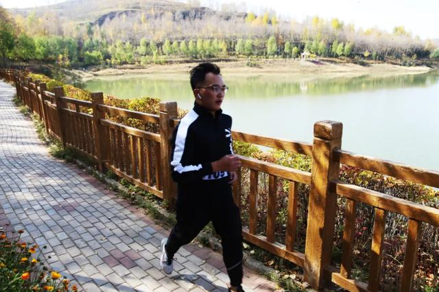 深秋的莲花湖景区,颇为宁静,湖水碧绿、碧波荡漾,捕食的水鸟也在水面上时聚时散,运动员挥洒着的汗水和喘息声,组成一曲悠远而又充满力量感的交响曲,伴着深秋美景在莲花湖回响。