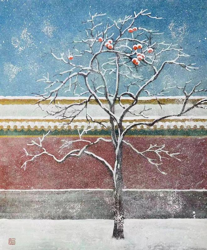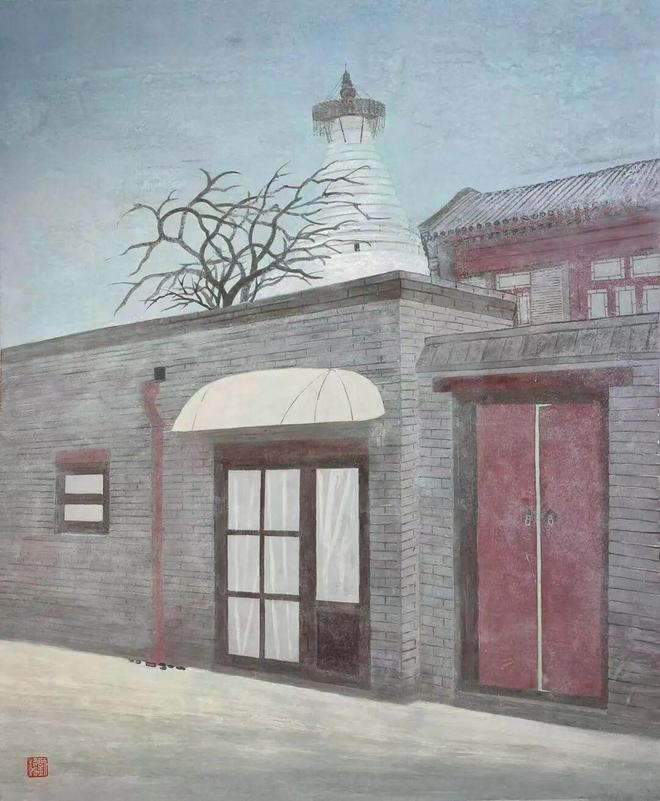 那不是现实的再现,而是记忆的色调。胡同深处飘来的槐花香味,鸽哨掠过天际的悠长回响,四合院青砖上的斑驳光影——这些无法被相机捕捉的「北京」,被他用矿物的颗粒一层层堆积在画面上。那些灰色,不是单调的沉寂,而是丰富的统一:有晨雾的朦胧,有暮色的温柔,有岁月的包浆,也有生命的温度。